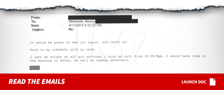Weinstein went public with emails – first obtained by TMZ — written between April 2013 and February 2017 by the woman who claims she was raped by Weinstein on March 18, 2013 in NYC.