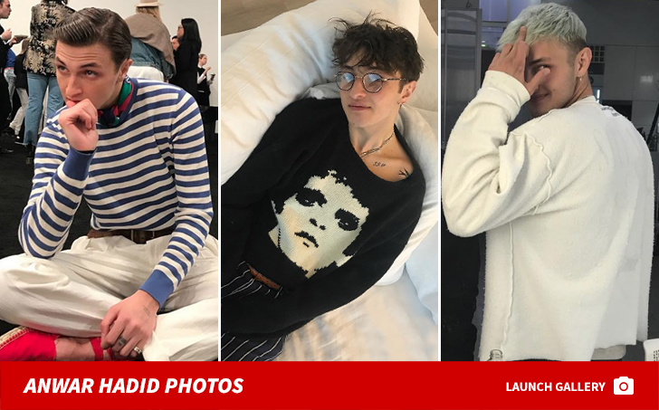 Here’s Anwar Hadid just trying to keep his love life on the down-low during Milan Fashion Week and … JUST KIDDING, LOOK AT THAT HUGE HICKEY ON HIS NECK!!!!